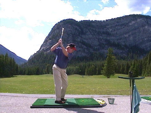 Banff Springs Golf Course. Thin air helps Chuck blasts a 7 Iron more than 300 yards.