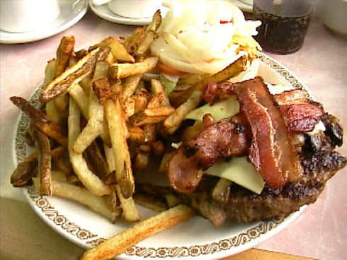 Grizzly Bacon Burger and fries at The Grizzly Inn.