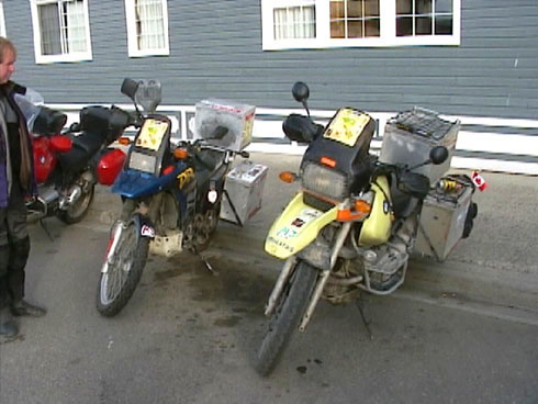 Ivan Bento Alves' Susuki DR–800S and Henrique Martinato's R1100GS. Back from the Arctic and heading home to Brazil.