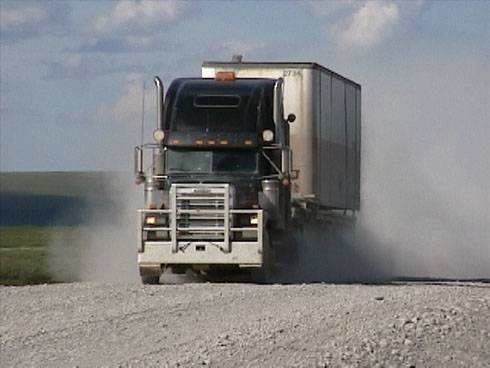 The reason why they call this "The Haul Road". Look out for flying rocks!